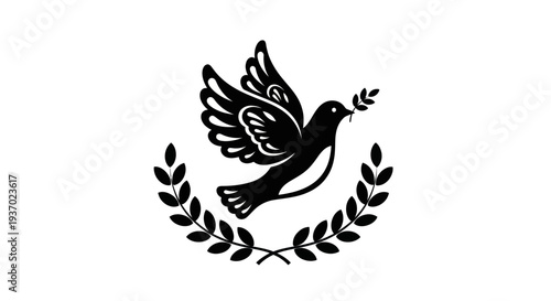 © Moples, Obraz premium Flying dove with olive branch vector