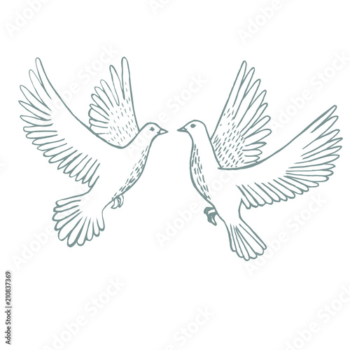 Obraz premium Flying Doves in Hand-Drawn Style