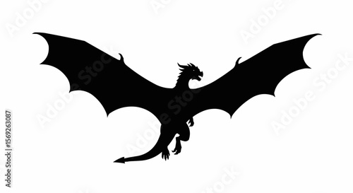 © Haider, Fototapeta premium Flying Dragon Silhouette Vector – Fantasy Creature Art