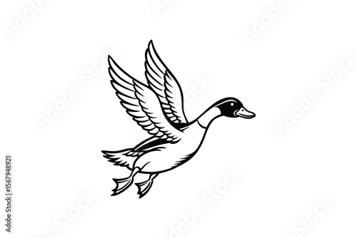 Fototapeta premium Flying Duck Illustration in Black and White Silhouette