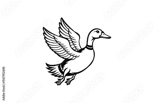 Obraz premium Flying Duck Illustration in Black and White Silhouette