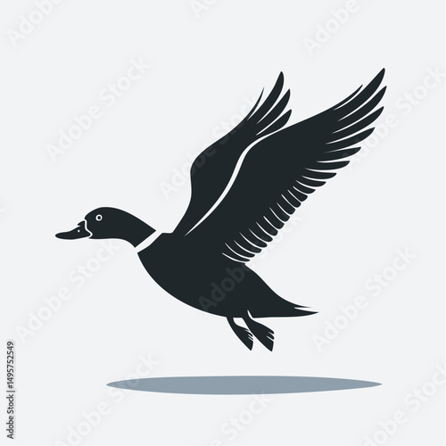© mommy, Fototapeta premium Flying Duck Silhouette — Flat 2D Minimalist Vector