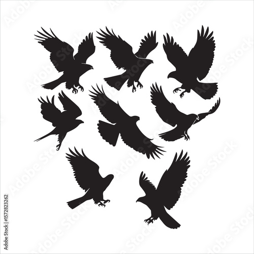 Obraz premium Flying Eagle and Hawk Silhouettes Vector Collection
