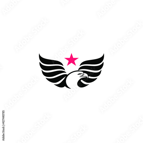 © aliafandi, Obraz premium flying eagle and star icon logo vector illustration in monochrome style