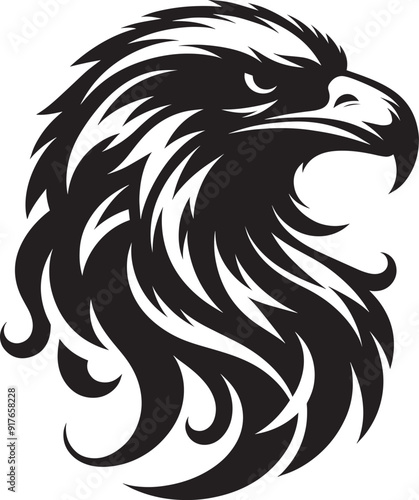 © Md Hasan, Obraz premium Flying Eagle bird head Silhouette isolated on white background Minimalist Eagle vector shape
