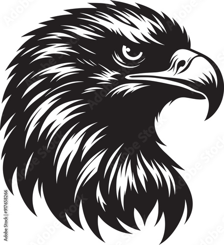 © Md Hasan, Obraz premium Flying Eagle bird head Silhouette isolated on white background Minimalist Eagle vector shape
