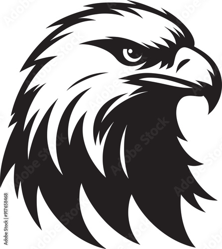 © Md Hasan, Obraz premium Flying Eagle bird head Silhouette isolated on white background Minimalist Eagle vector shape