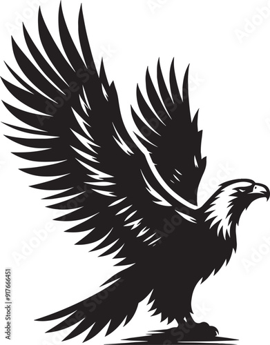 Fototapeta premium Flying Eagle bird Silhouette isolated on white background Minimalist Eagle...