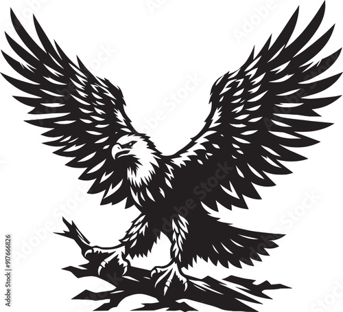 © Md Hasan, Fototapeta premium Flying Eagle bird Silhouette isolated on white background Minimalist Eagle vector shape