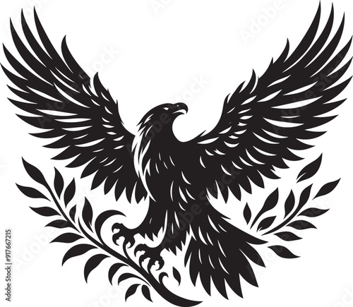© Md Hasan, Fototapeta premium Flying Eagle bird Silhouette isolated on white background Minimalist Eagle vector shape