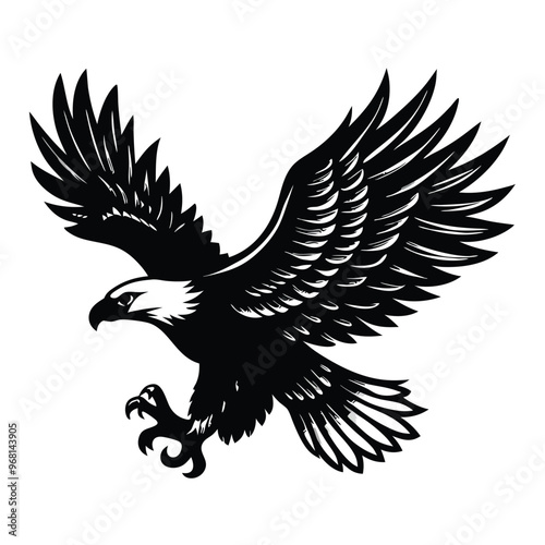 © Swapna graphics, Fototapeta premium flying Eagle black and white illustration silhouette,
