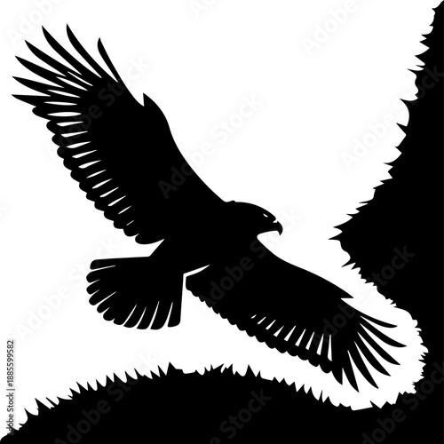 © Rezowan , Obraz premium Flying Eagle Black Silhouette Wildlife Illustration