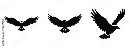 Obraz premium Flying eagle silhouette vector icon set.