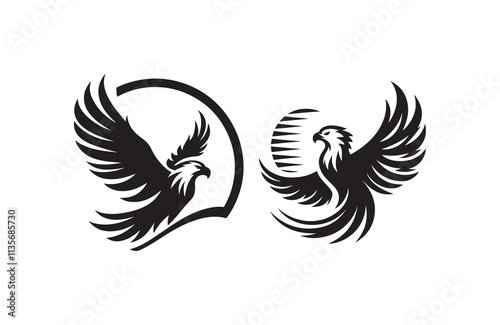 © MdBadal, Obraz premium flying eagle silhouette vector logo illustration