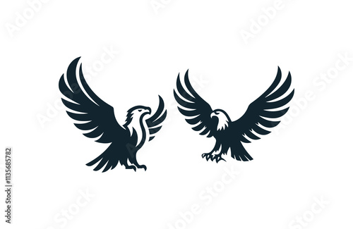 © MdBadal, Obraz premium flying eagle silhouette vector logo illustration