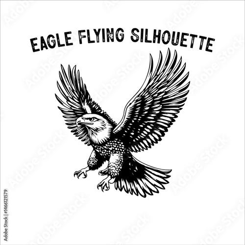 © MdNayab, Obraz premium Flying Eagle Silhouette Vector on White Background.