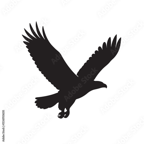 Obraz premium Flying Eagle Silhouette with Wings Spread in Majestic Soaring Pose