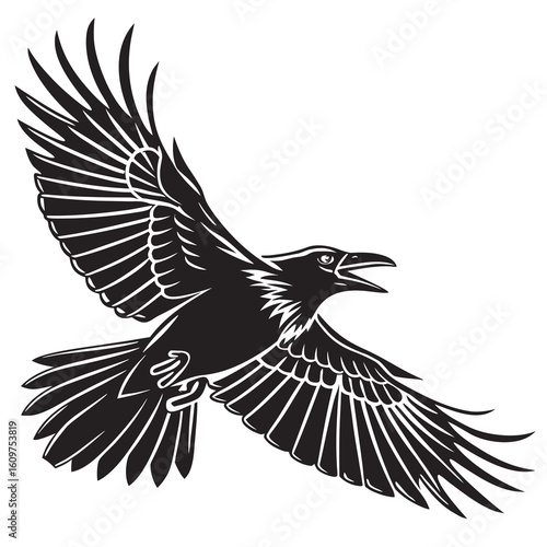 © Atif, Fototapeta premium Flying eagle vector silhouette illustration with spread wings