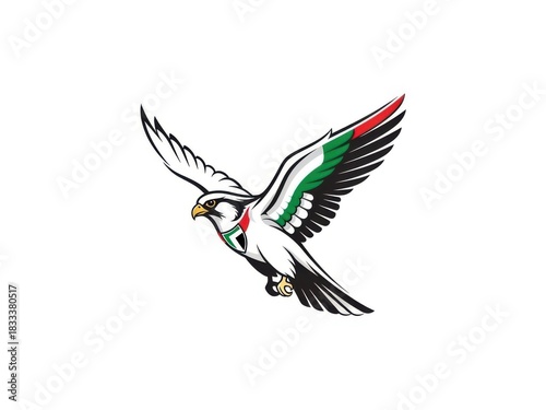 Fototapeta premium "Flying Falcon Logo with Arabic Colors, Stylized Eagle Illustration, Isolated...