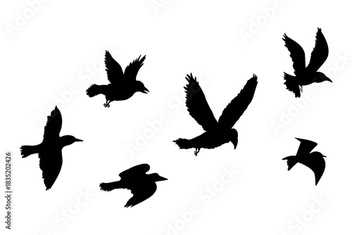 Fototapeta premium Flying flock of birds silhouette, Simple swallows in flight, crows in the...