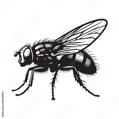Obraz premium Flying Fly silhouette, zooming with precision and speed – Fly illustration –...