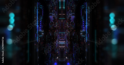 Naklejka premium Flying futuristic central processing unit. electronic circuitry within a computer that carries out the instructions of a computer program performing arithmetic, logic, controlling.