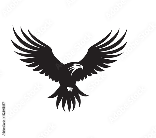 Obraz premium Flying hawk black color on isolated white background