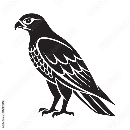 Obraz premium Flying hawk silhouette minimal design black and white vector