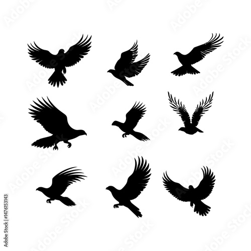 © fijulanam468, Obraz premium Flying hawk silhouette on white vector set
