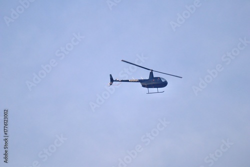 © Rebecca, Fototapeta premium flying helicopter in blue sky
