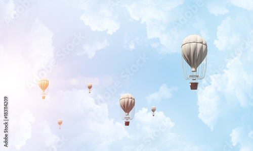 Naklejka premium Flying hot air balloons in the air.