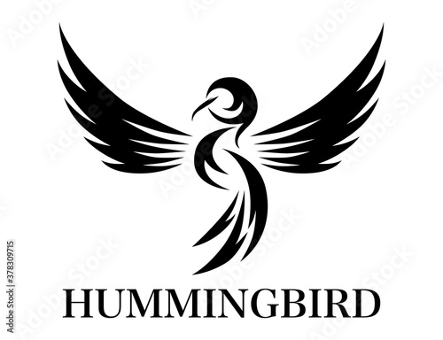 © Sakarapap, Fototapeta premium Flying hummingbird black line art Vector illustration on a white background of. Suitable for making logo.
