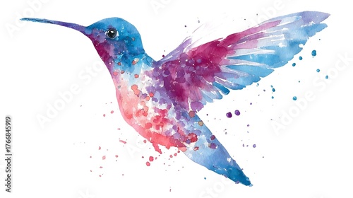 © Nail, Obraz premium Flying hummingbird logo with soft watercolor style and clean outline. Concept: freedom, creativity, elegance, positive energy — used for art, beauty, wellness, handmade, and creative brands.