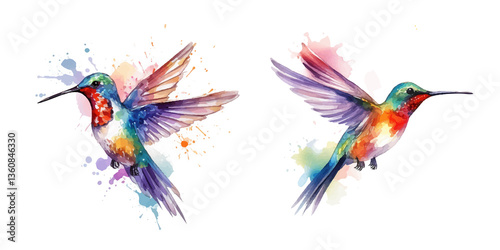 © Arif, Obraz premium flying hummingbird or colibri bird watercolor hand paint vector