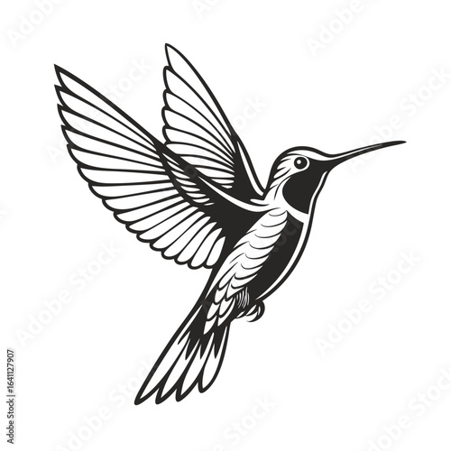 Fototapeta premium Flying Hummingbird Silhouette Vector – Elegant Tropical Bird Black Icon Design