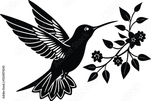 © MDHABIBUR, Obraz premium Flying hummingbirds silhouette Vector