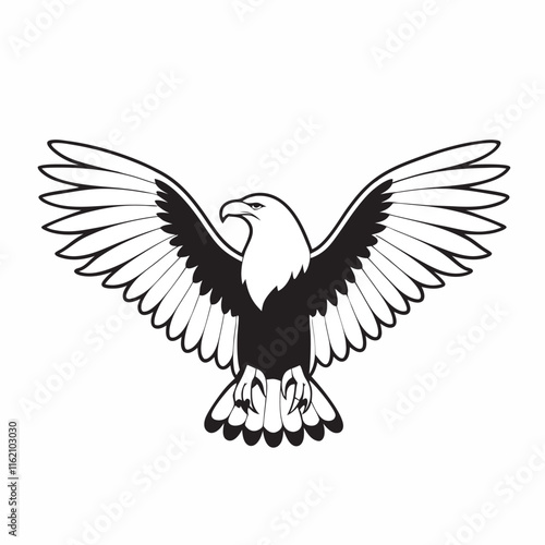 © Dot Spring, Obraz premium flying hunting bald eagle black silhouette illustration design.