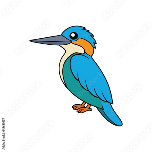 © fazlay907, Obraz premium Flying kingfisher cartoon vector illustration on white background, perfect for clipart.