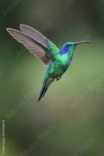 Fototapeta premium Flying Lesser violet-ear Hummingbird (Colibri cyanotus), Costa Rica