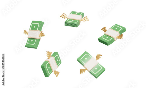 Fototapeta premium 황금 날개가 달린 날아다니는 돈뭉치 Flying Money Stack with Golden Wings