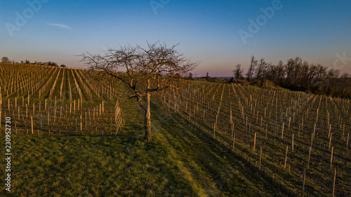 © SpiritProd33, Fototapeta premium Flying over a vineyard in a winter day