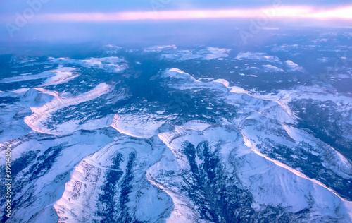 Fototapeta premium flying over rockies in airplane from salt lake city at sunset