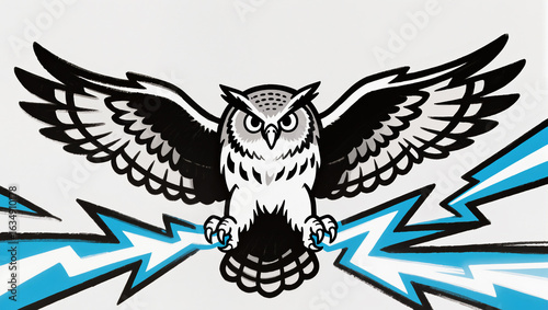 Obraz premium Flying owl casting lightning in dynamic tattoo style