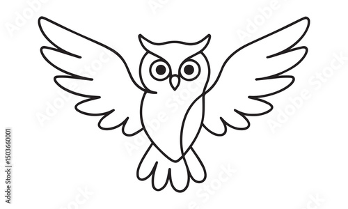 © rratry, Fototapeta premium Flying Owl Line Art Illustration