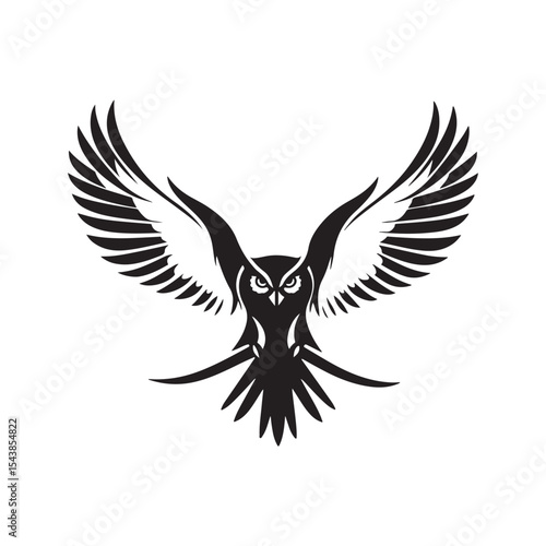 © Nurul Hasan, Obraz premium Flying owl silhouette vector illustration