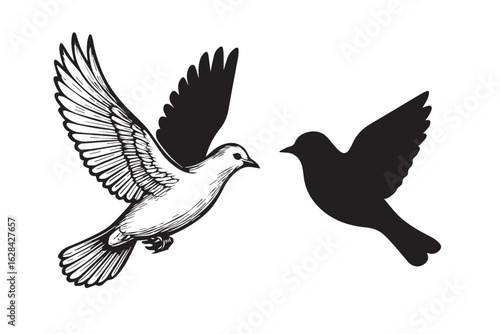 Fototapeta premium Flying Peace Dove Sketch and Silhouette