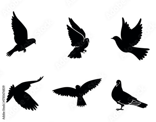 Obraz premium Flying Pigeon Silhouette Set | Bird Vector Illustration