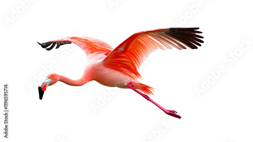 © Ajay, Fototapeta premium Flying pink flamingo isolated on transparent background.