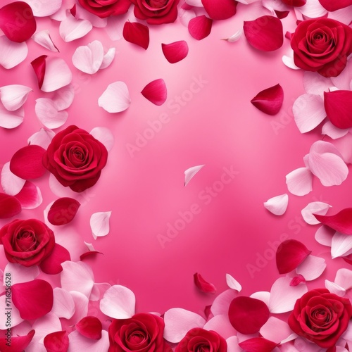 © shaadjutt36, Fototapeta premium Flying pink rose petals against a pink background