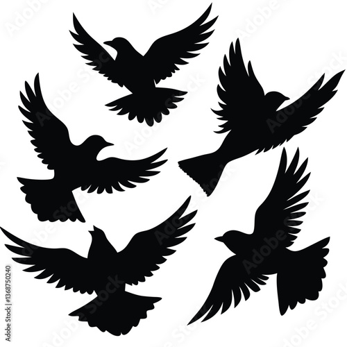Fototapeta premium Flying Popular birds silhouette isolated on white background.